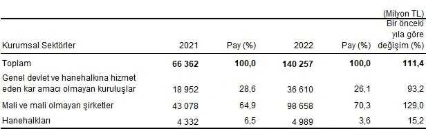 Kurumsal sektörlere göre çevre koruma harcamaları, 2021 – 2022