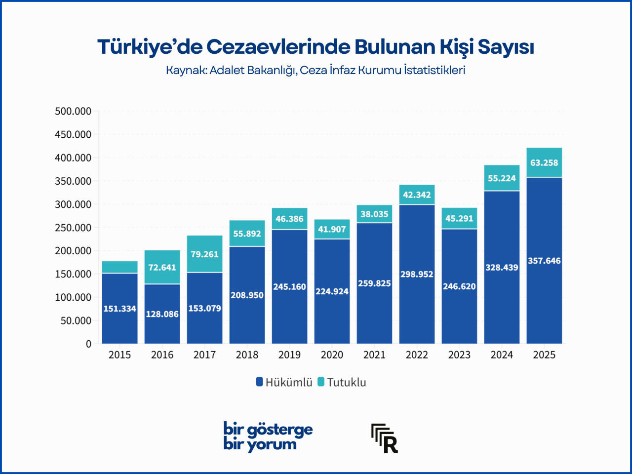 Cezaevlerindeki doluluk oranı ise kapasitenin yüz binden fazla kişi aşılmasıyla yaklaşık %133 seviyesine ulaştı.