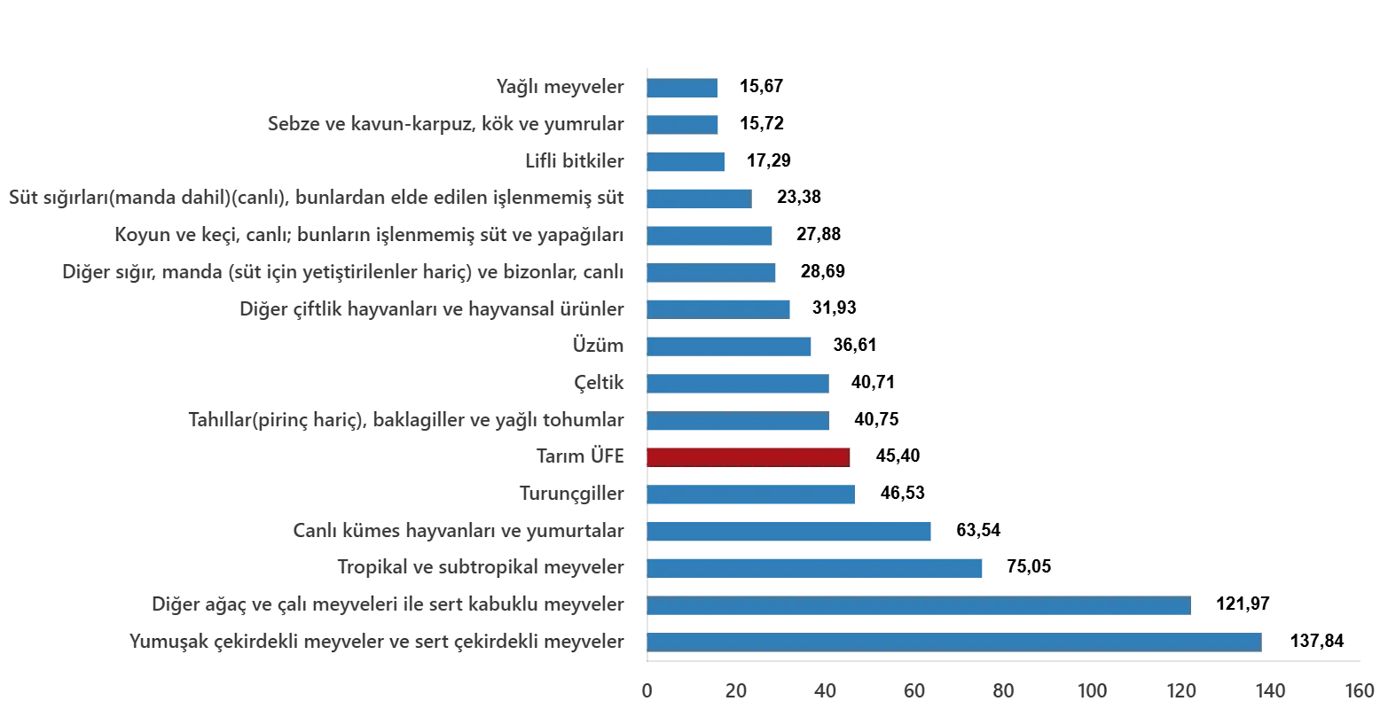 Tarım ürünleri üretici fiyat endeksi (Tarım-ÜFE) yıllık %45,40 arttı, aylık %4,00 arttı