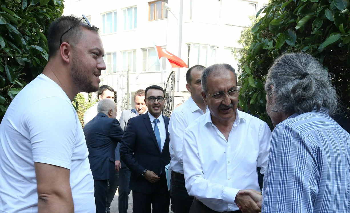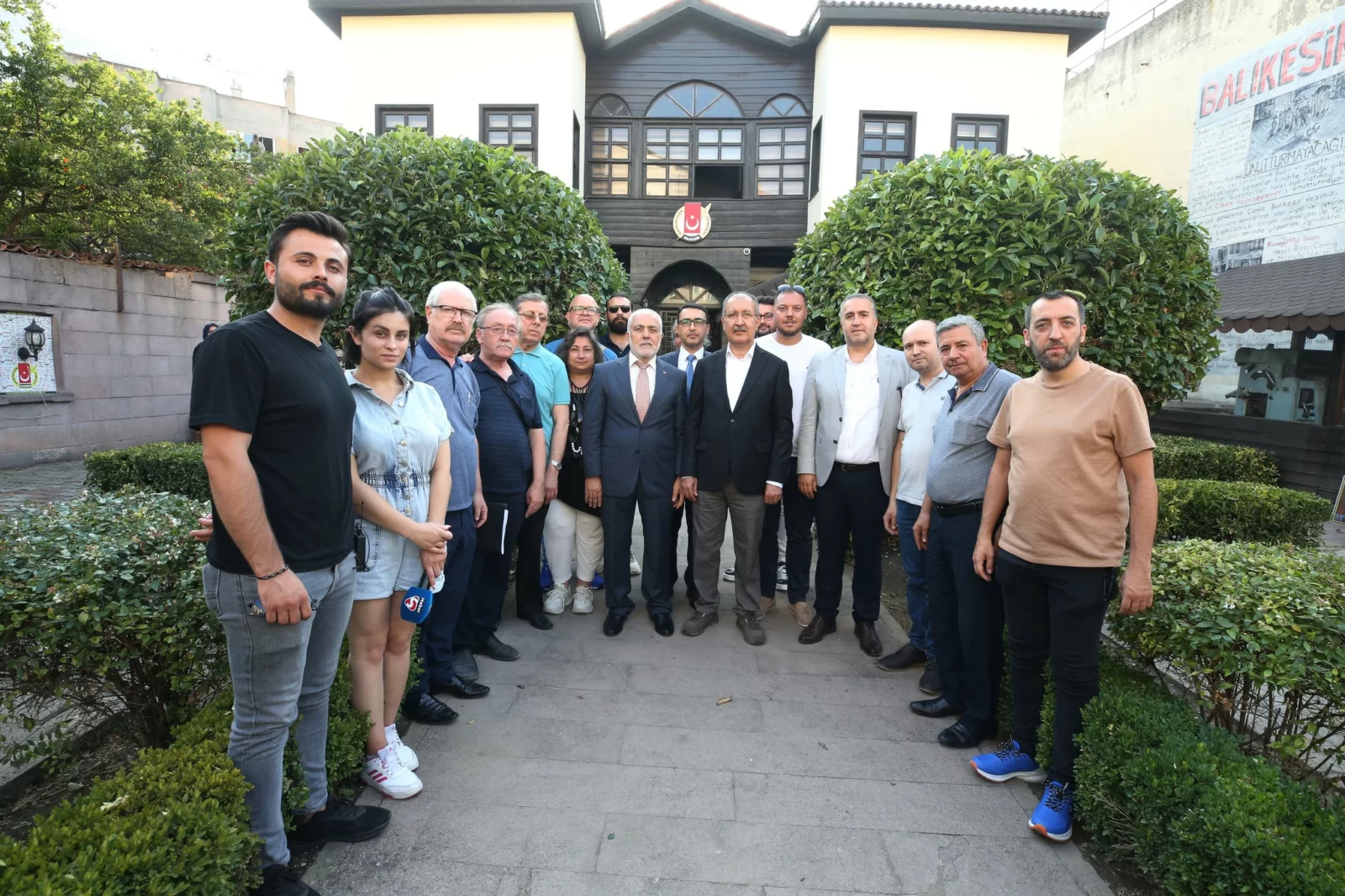 Balıkesirli gazeteciler ile buluşmasında Erkılınç, BGC Basın Müzesi ve Medya Merkezi’nin tarihi binası önünde ziyaretinin anısına fotoğraf çektirdi.