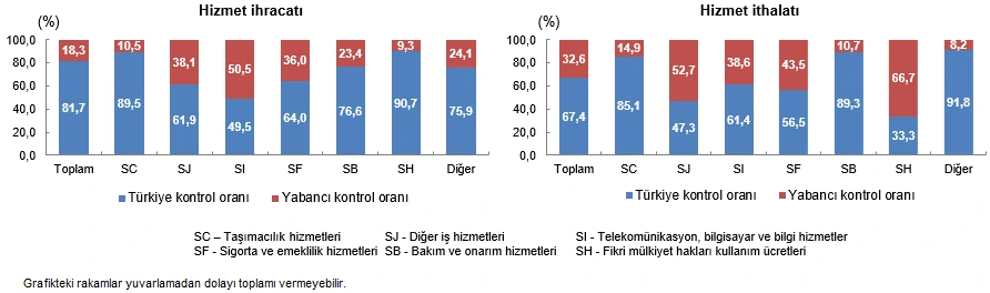 Yabancı kontrollü girişimler hizmet ihracatının %18,3’ünü, ithalatının %32,6’sını yaptı