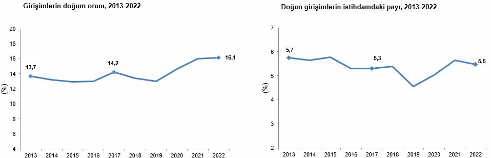 Girişimlerin 2022 yılında doğum oranı %16,1 oldu