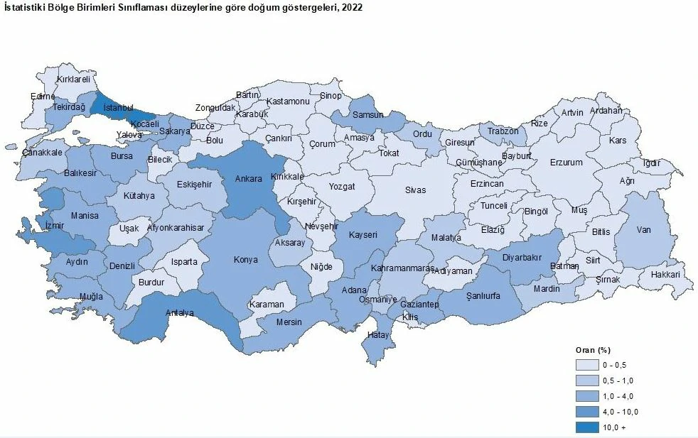 İllere göre 2022 doğan girişimlerden en yüksek payı %26,8 ile İstanbul aldı