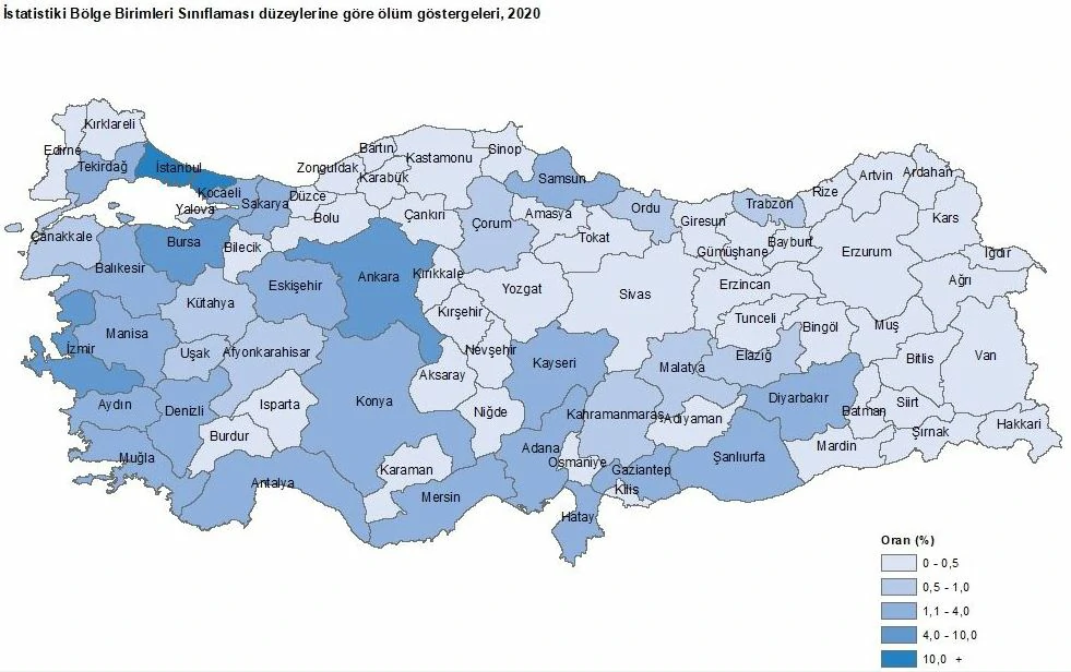 İllere göre 2020 yılında ölen girişimlerden en yüksek payı %27,3 ile İstanbul aldı