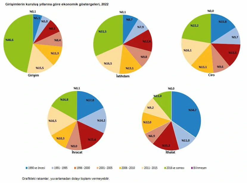 Girişimlerden 1990 ve öncesinde kurulanlar ise %34,7’lik ithalat payı ile en yüksek orana sahip oldu.