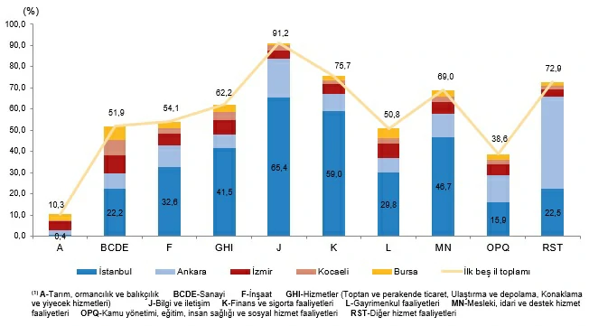 İstanbul, “tarım, ormancılık, balıkçılık” ve “diğer hizmet faaliyetleri” hariç, tüm faaliyetlerde en yüksek payı aldı