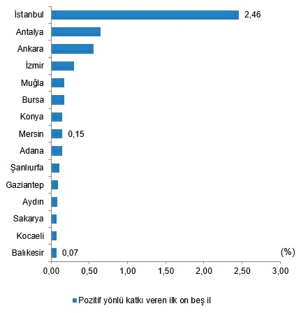 İstanbul %2,46 ile, 2022 yılı Türkiye GSYH büyümesine (%5,5) en fazla katkı sağlayan il oldu