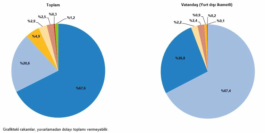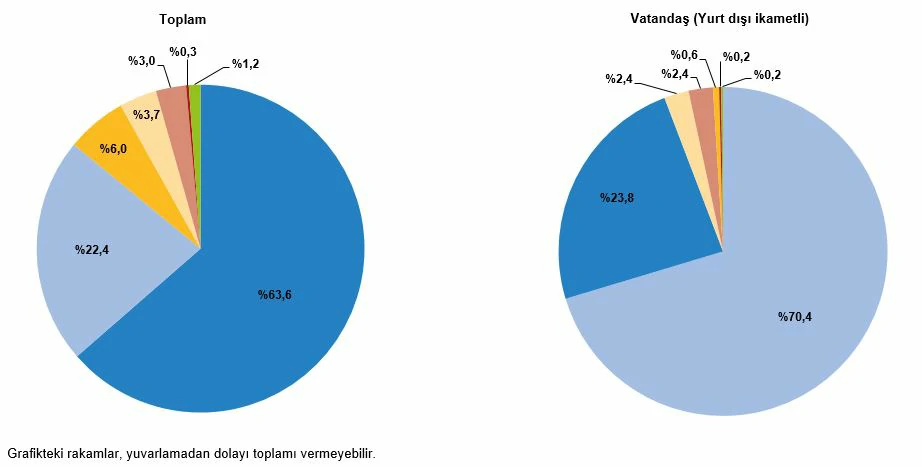 İkinci sırada %22,4 ile “akraba ve arkadaş ziyareti”, üçüncü sırada ise %6 ile “alışveriş” yer aldı. Yurt dışı ikametli vatandaşlar ise ülkemize %70,4 ile en çok “akraba ve arkadaş ziyareti” amacıyla geldi.