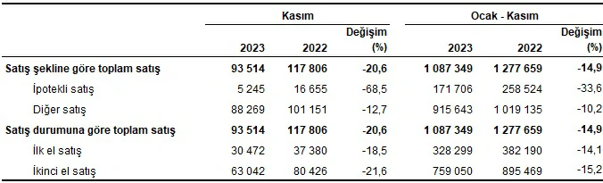 Konut satışı, Kasım 2023
