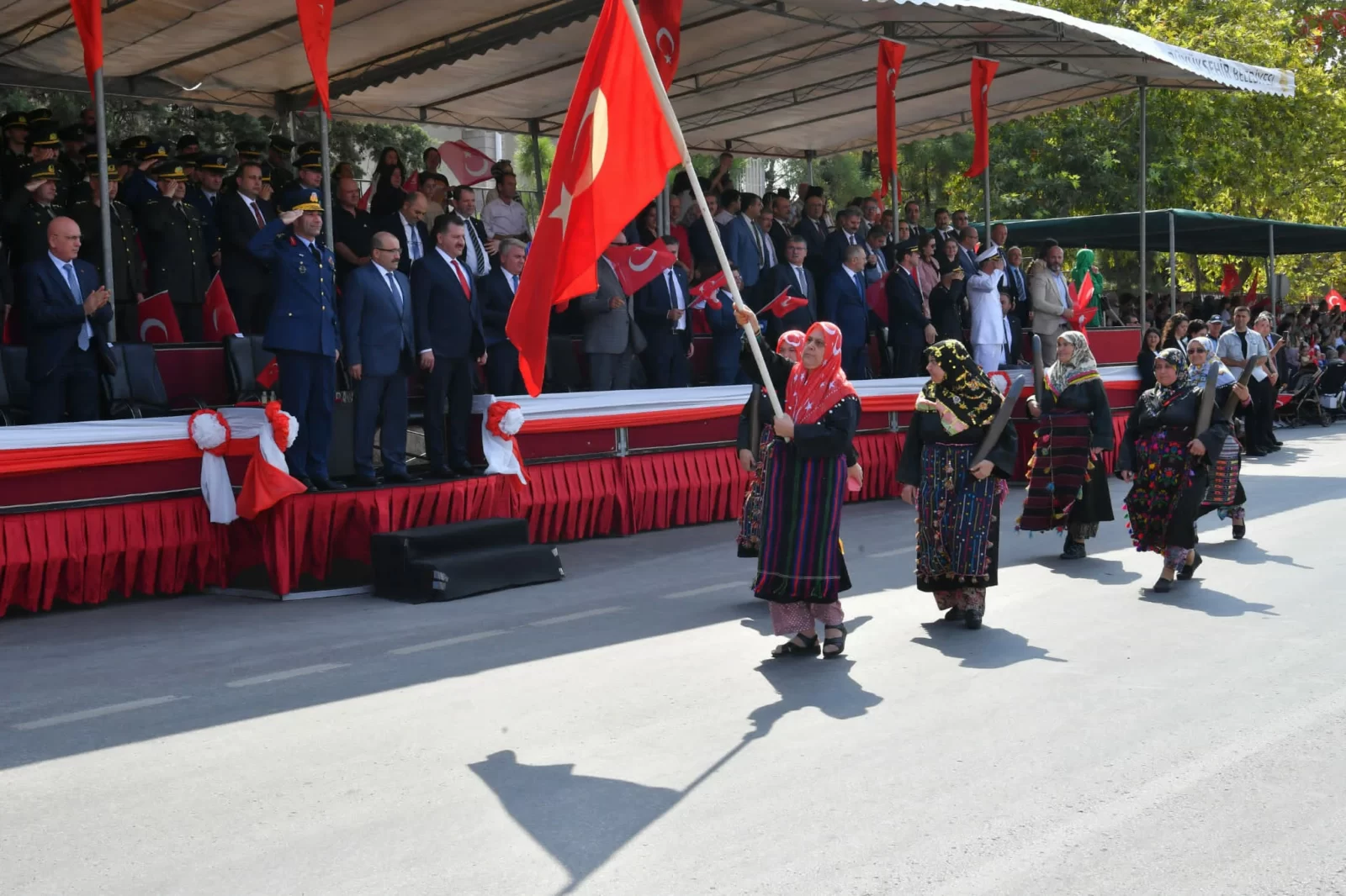 Kurtuluşun 101 inci yılında Kuvâ-yi Milliye ateşinin hiç sönmeyeceğini bir kez daha gösteren kutlama programının son bölümünde gerçekleşen Geçit Töreni, protokol ve vatandaşlar tarafından ilgiyle izlendi. Vatandaşların bayraklar ve alkışlarla eşlik ettiği geçitte gaziler, izci ve sporcu öğrenciler, kamu kurum ve kuruluşlarının hizmet araçları ile askeri araçlar yer aldı. Ayrıca Kurtuluş Savaşının zor günlerinde düşmanı korkutarak kaçırdıkları rivayetiyle bilinen geleneksel Tülütabakların geçidi coşkuya farklı bir renk kattı.