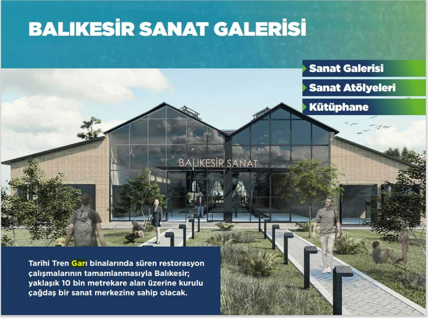 Tarihi Tren Garı binalarında süren restorasyon çalışmalarının tamamlanmasıyla Balıkesir; yaklaşık 10 bin metrekare alan üzerine kurulu çağdaş bir sanat merkezine sahip olacak. Alanda; sanat galerisi, sanat atölyeleri, kütüphane yer alacak.