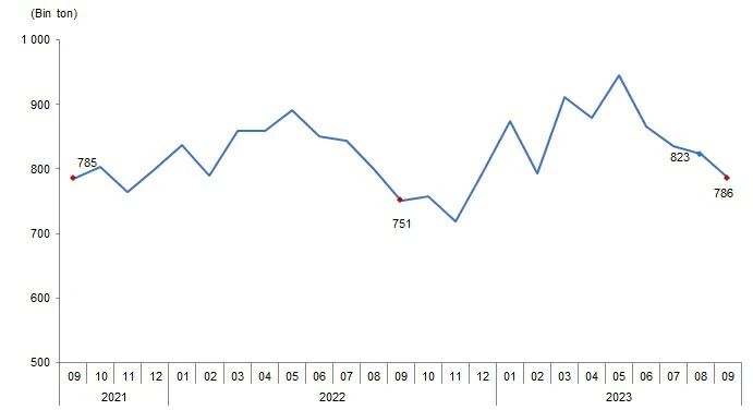 Bir önceki ay 823 bin 67 ton olan ticari süt işletmelerince toplanan inek sütü miktarı Eylül ayında %4,5 azalarak 786 bin 213 ton oldu.