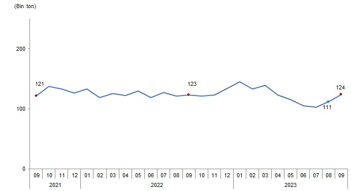Bir önceki ay 111 bin 497 ton olan içme sütü üretimi Eylül ayında %11,0 artarak 123 bin 742 ton olarak gerçekleşti.