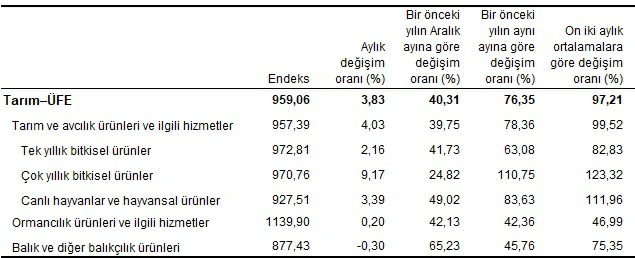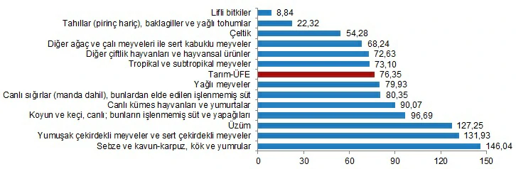 Tarım ürünleri üretici fiyat endeksi (Tarım-ÜFE) yıllık %76,35, aylık %3,83 arttı