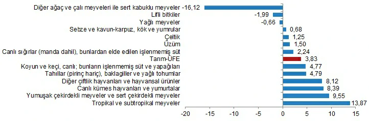 Yıllık Tarım-ÜFE’ye göre 6 alt grup daha düşük, 7 alt grup daha yüksek değişim gösterdi