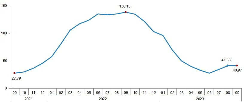 Ana gruplara göre Tarım-GFE ve değişim oranları, Eylül 2023