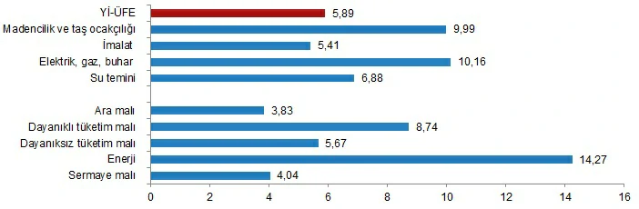 Ana sanayi gruplarının aylık değişimleri; ara malında %3,83, dayanıklı tüketim malında %8,74, dayanıksız tüketim malında %5,67, enerjide %14,27 ve sermaye malında %4,04 artış olarak gerçekleşti.