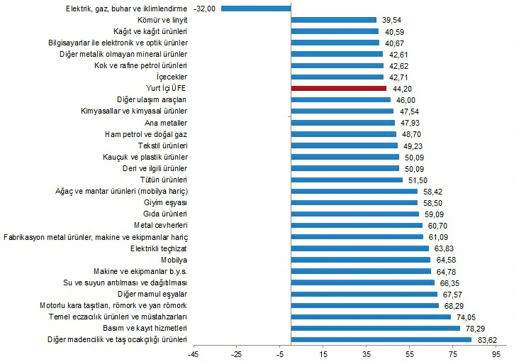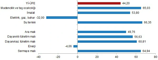 Yurt İçi Üretici Fiyat Endeksi (Yİ-ÜFE) yıllık %44,20, aylık %4,14 arttı